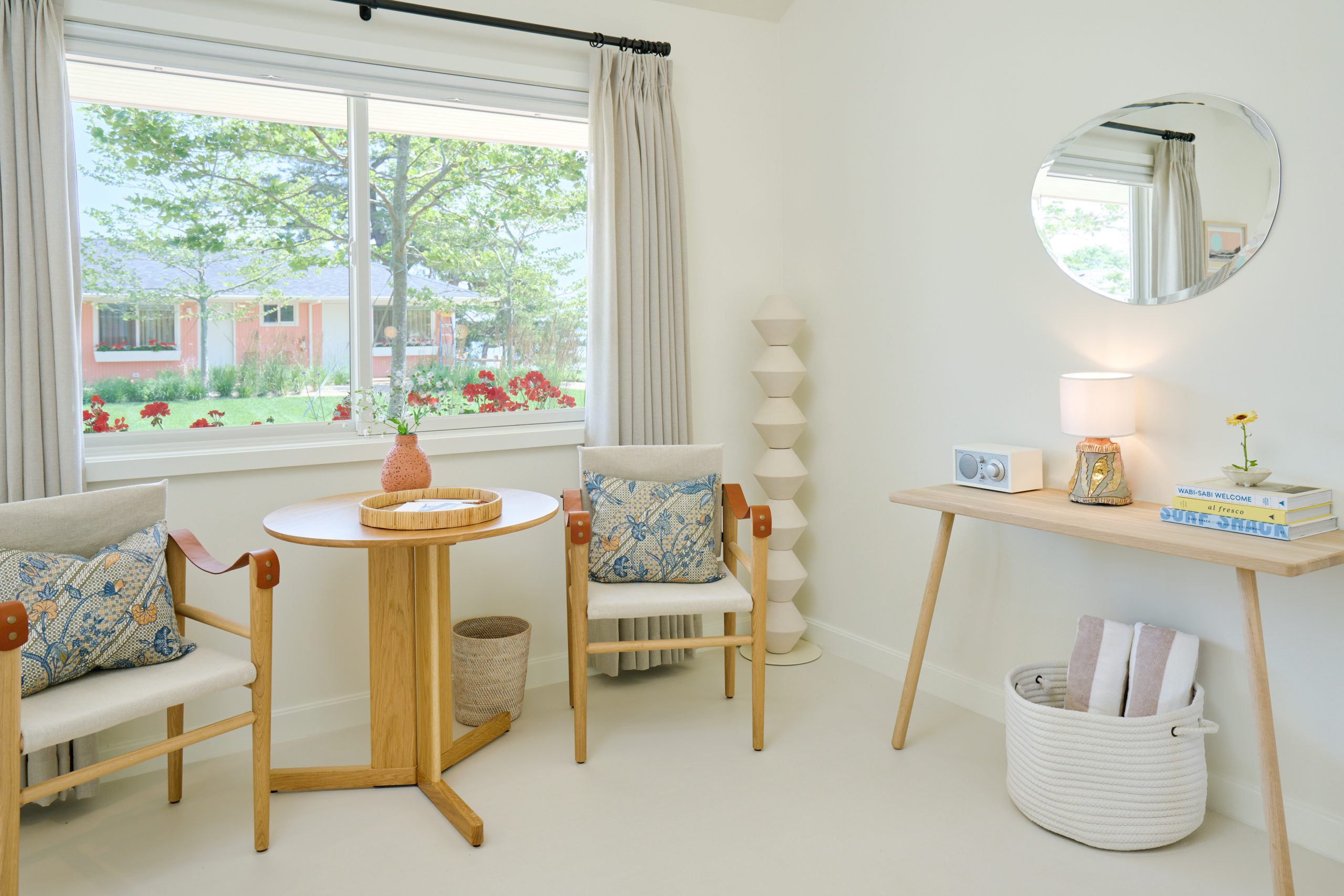 Nestled at the end of a wooded road on the crescent shores of Pipes Cove, the project sits on 1,400 linear feet of private, sandy beach facing Shelter Island. The project adhered to a philosophy of responsible development, respecting the delicate ecosystem surrounding Silver Sands. This focus on sustainability informed every detail—from the service and offerings to the furniture, color palette, and garden design—creating a harmonious environment.